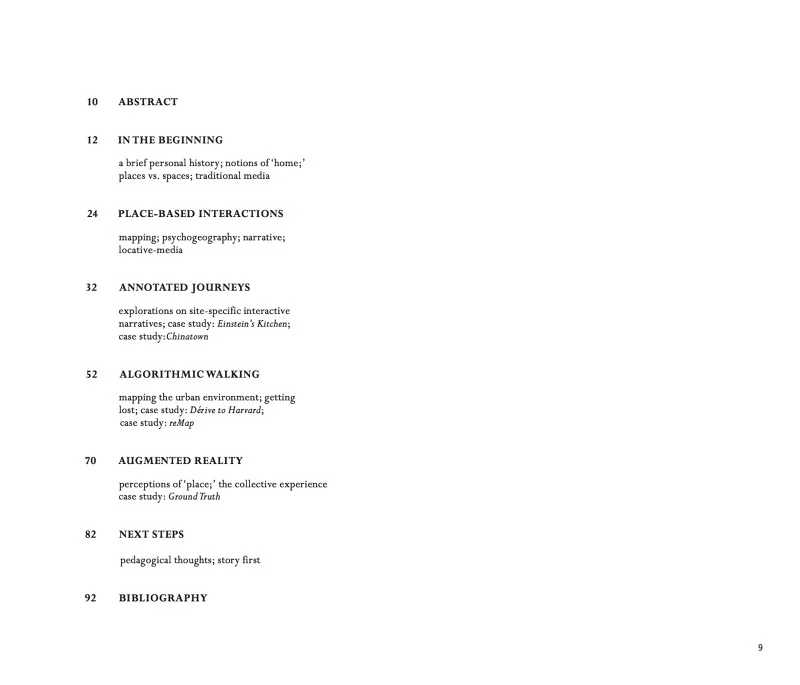 My graduate thesis, 'Place: An Annotated Geography,' focused on creating site-specific, interactive experiences using location-based media. In the development of my thesis, I struggled with how technology has isolated us from one another. GPS and mobile technologies allow us to stay connected and oriented in space, however, too often they compromise our awareness of where we are. As a result, I concentrated on using technology to augment our experiences of physical spaces by connecting us to the community of a place to learn about the historical and contemporary values of the people in a particular environment.